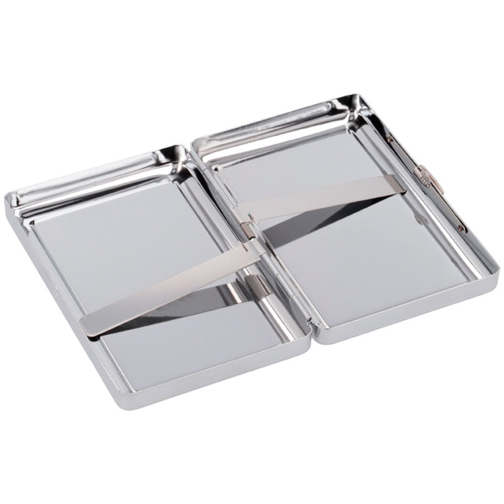 El práctico cierre de clic garantiza que el estuche se mantenga cerrado de forma segura, evitando que los cigarrillos se dañen o se caigan. Además, su construcción metálica de alta calidad le otorga resistencia y durabilidad, haciendo de este accesorio una inversión a largo plazo.